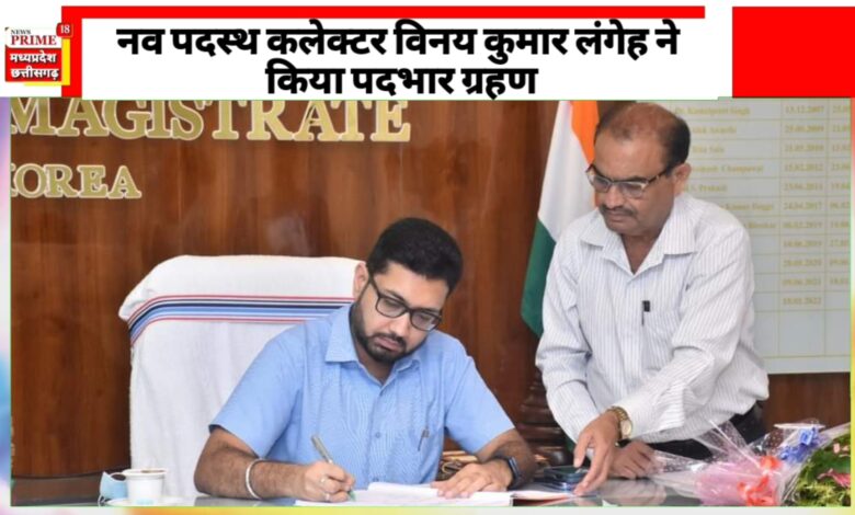 नव पदस्थ कलेक्टर विनय कुमार लंगेह ने किया पदभार ग्रहण