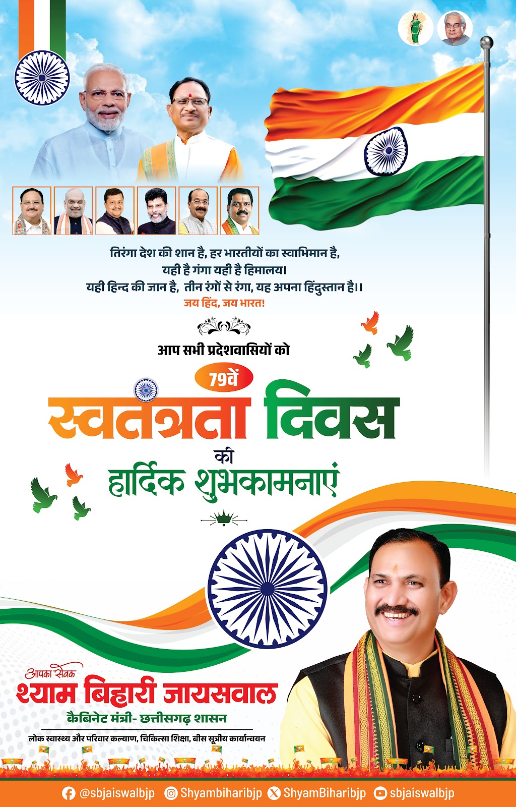श्यामबिहारी जयसवाल की तरफ से स्वतंत्रता दिवस की हार्दिक बधाई एवं शुभकामनाए