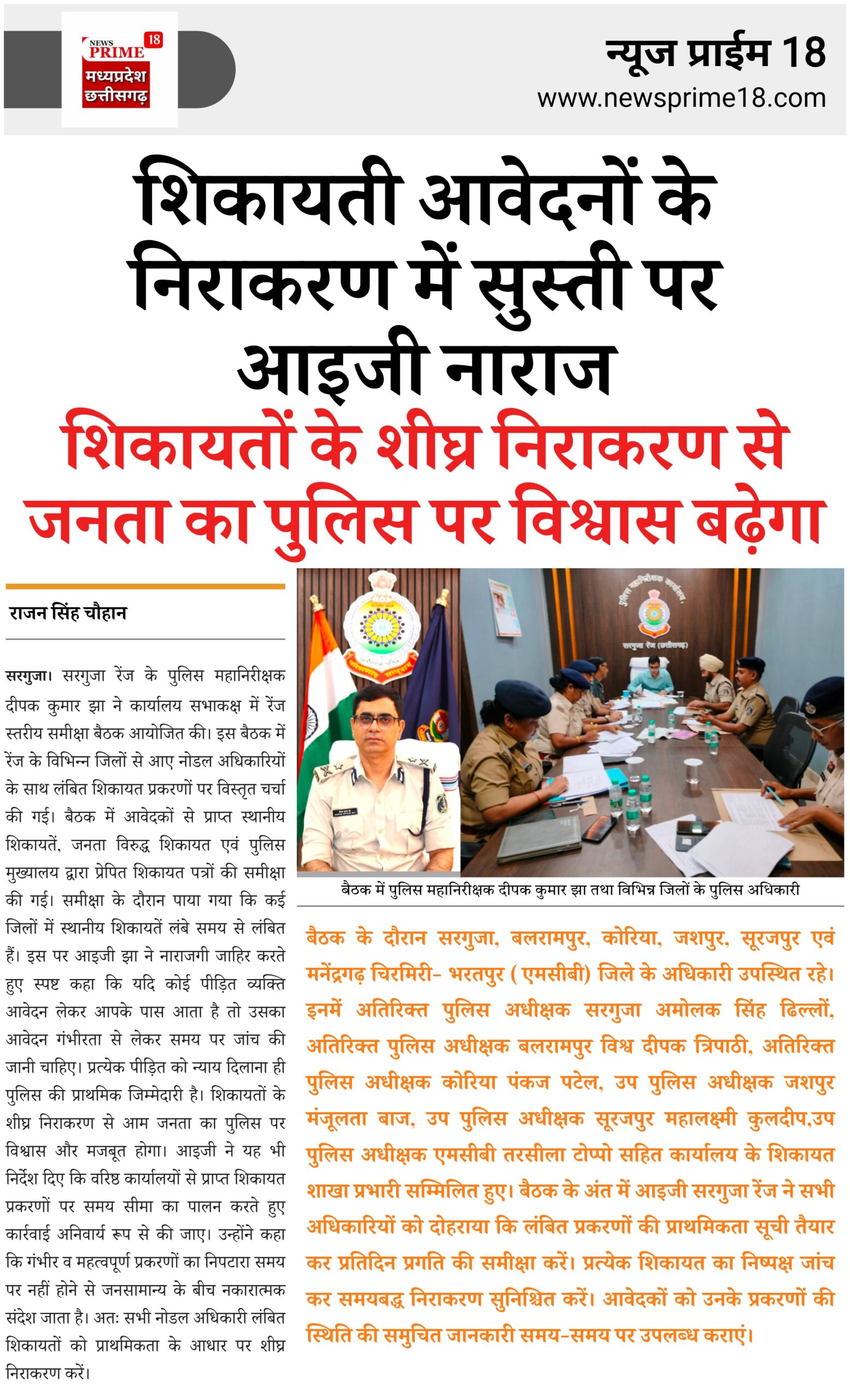 आइजी ने यह भी निर्देश दिए कि वरिष्ठ कार्यालयों से प्राप्त शिकायत प्रकरणों पर समय सीमा का पालन करते हुए कार्रवाई अनिवार्य रूप से की जाए।
