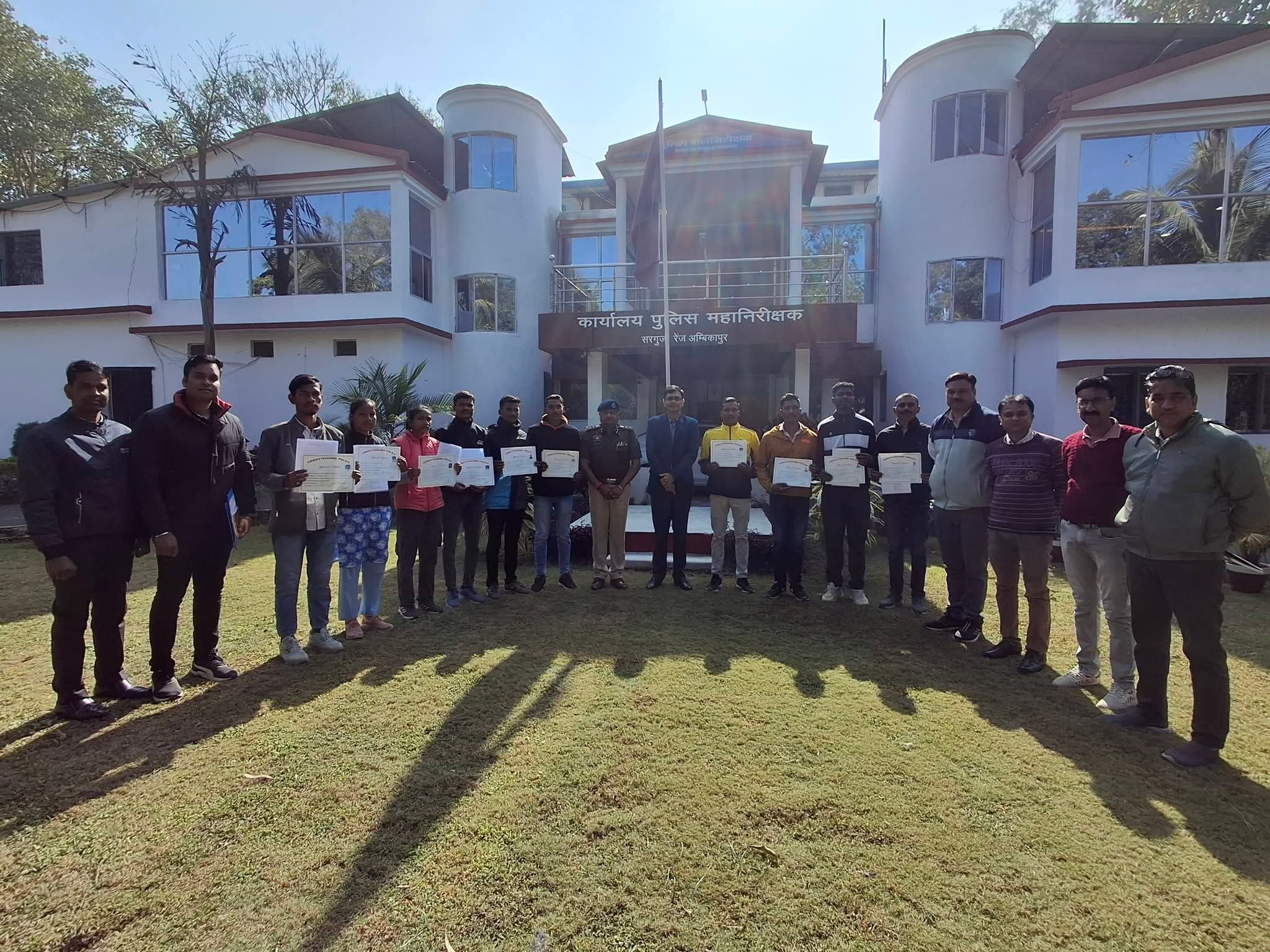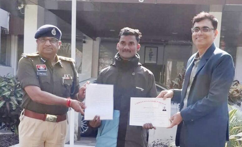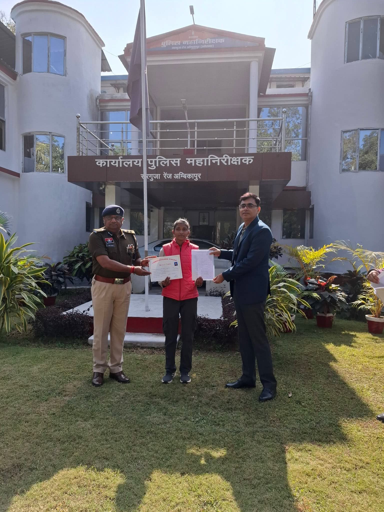 अंबिकापुर। जिला पुलिस आरक्षक संवर्ग भर्ती प्रक्रिया वर्ष 2023-2024 में चयनित 10 अभ्यर्थियों ने आज दिनांक 20/12/2025 को जिला पुलिस बल सरगुजा में आरक्षक जी. डी. के पद पर आमद दर्ज कराई। चयनित अभ्यार्थियों को पुलिस महानिरीक्षक सरगुजा रेंज श्री दीपक कुमार झा IPS एवं वरिष्ठ पुलिस अधीक्षक सरगुजा श्री राजेश अग्रवाल IPS द्वारा नियुक्ति आदेश एवं नियुक्ति प्रमाण पत्र देकर सभी 10 अभ्यार्थियों का पुलिस जिला बल में अपनी सेवाएँ देने के लिए शुभकामनाएँ दी।