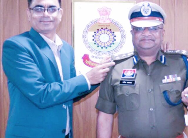 आईजी सरगुजा रेज सरगुजा ने कॉलर बैच लगाकर आईपीएस राजेश कुमार अग्रवाल को दी पदोन्नति
